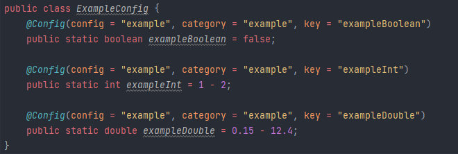 Okay, create a config class (in my case ExampleConfig.java)