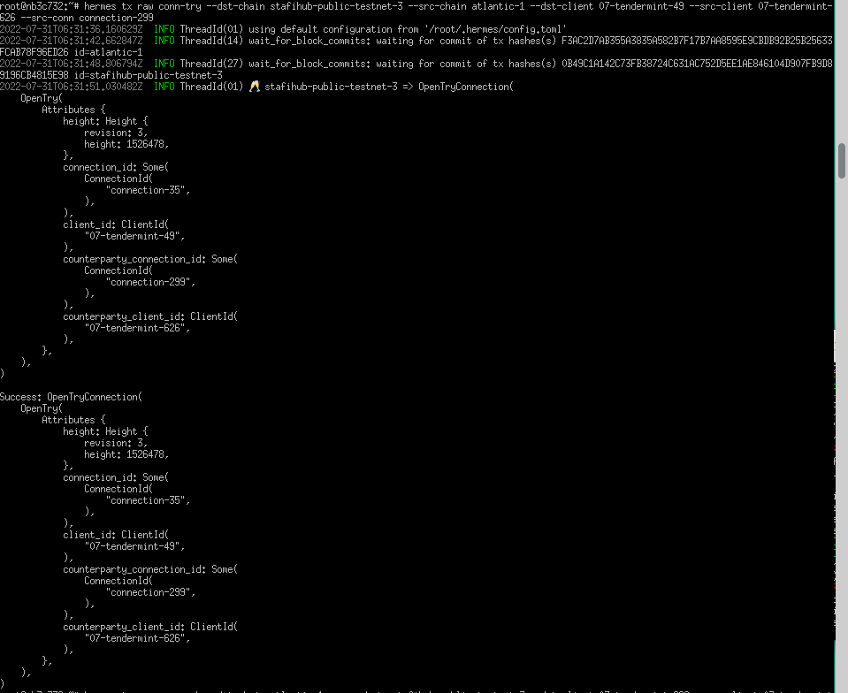 hermes tx raw conn-try --dst-chain stafihub-public-testnet-3 --src-chain atlantic-1 --dst-client 07-tendermint-49 --src-client 07-tendermint-626 --src-conn connection-299