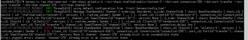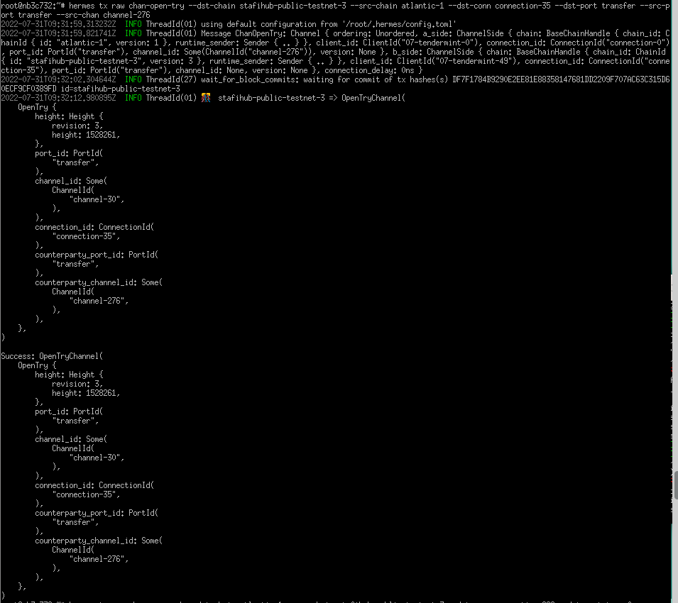 hermes tx raw chan-open-try --dst-chain stafihub-public-testnet-3 --src-chain atlantic-1 --dst-conn connection-35 --dst-port transfer --src-port transfer --src-chan channel-276