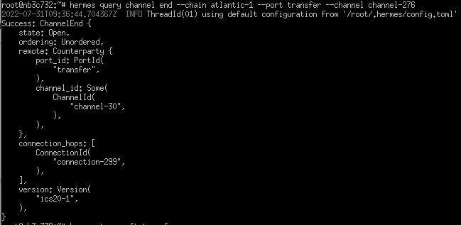 hermes query channel end --chain atlantic-1 --port transfer --channel channel-276