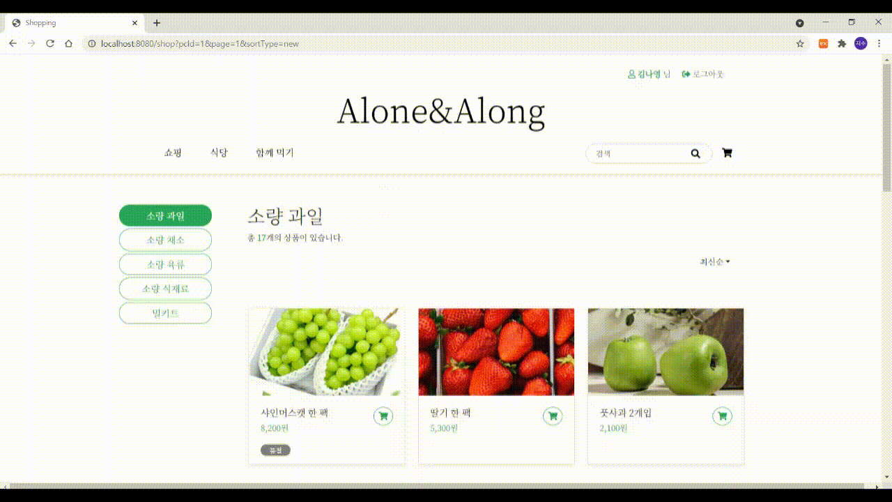 1인 가구를 위한 소량 식재료 및 밀키트를 판매한다.