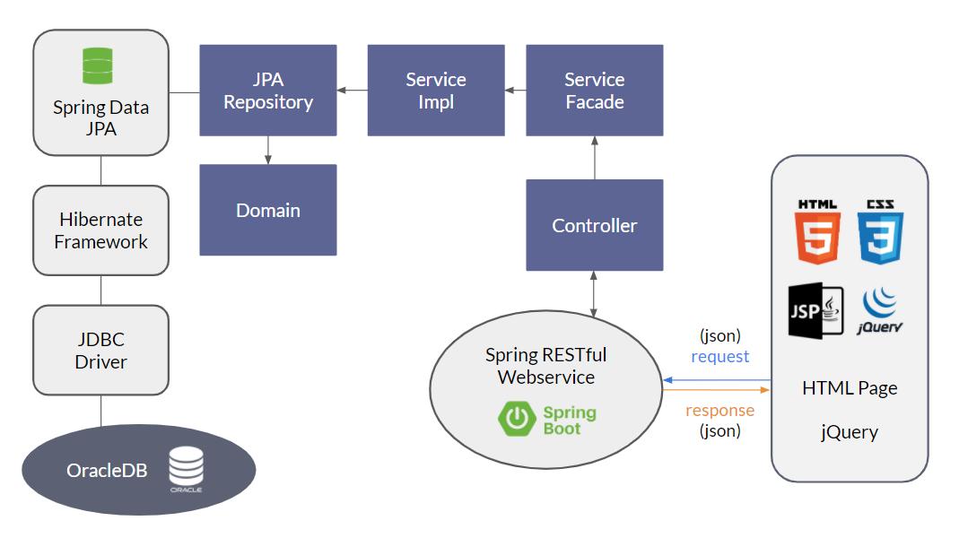 | FrontEnd | HTML, CSS, JSP, JavaScript, JQuery, Ajax, BootStrap, Tiles, Thymeleaf |