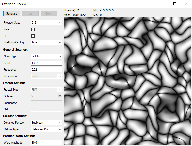I have written a compact testing application for all the features included in FastNoise with a visual representation. I use this for development purposes and testing noise settings used in terrain generation.