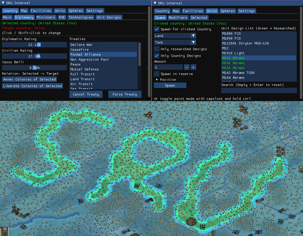 - Mouse Hover unit modifiers (Changing owner country, health, etc.)