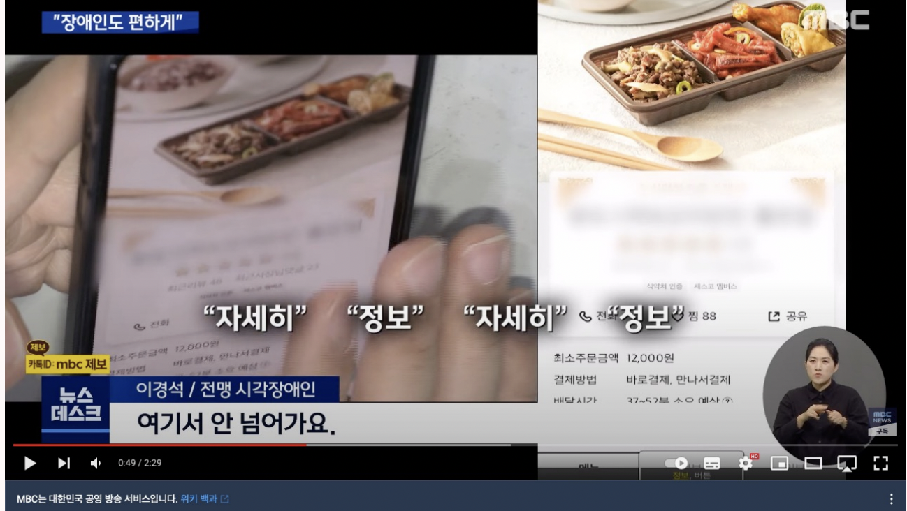 As marked red on the image, it takes almost 30minutes to order a delivery food from a normal delivery app for blinders