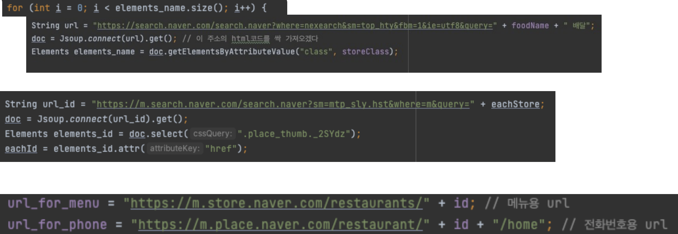 Web Crawling -> But where? We used the 'Naver Map' which allows crawling and has plenty of information about stores and menus.
