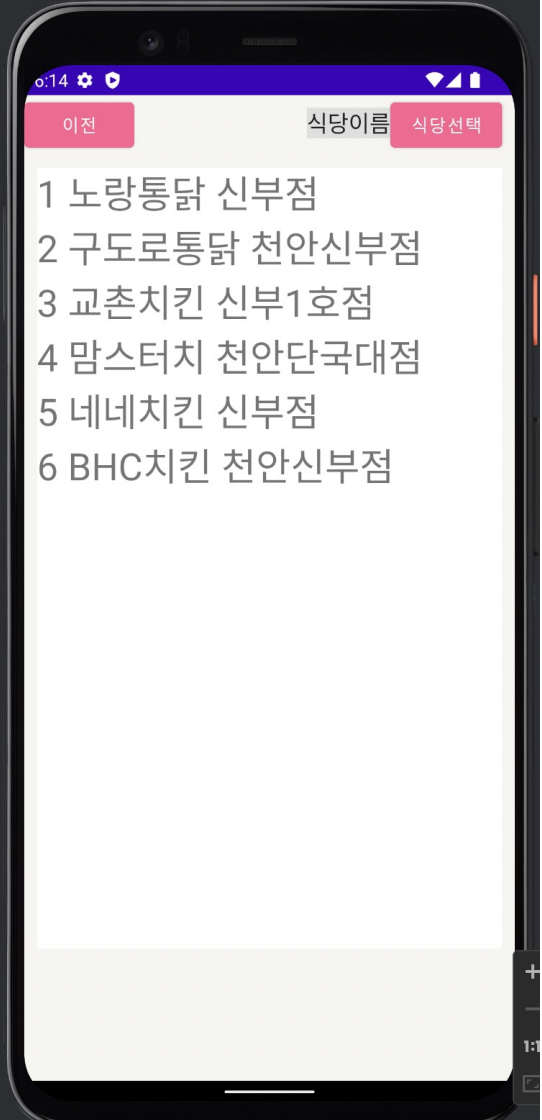 Based on GPS, it searches '치킨' stores near the user on the web.