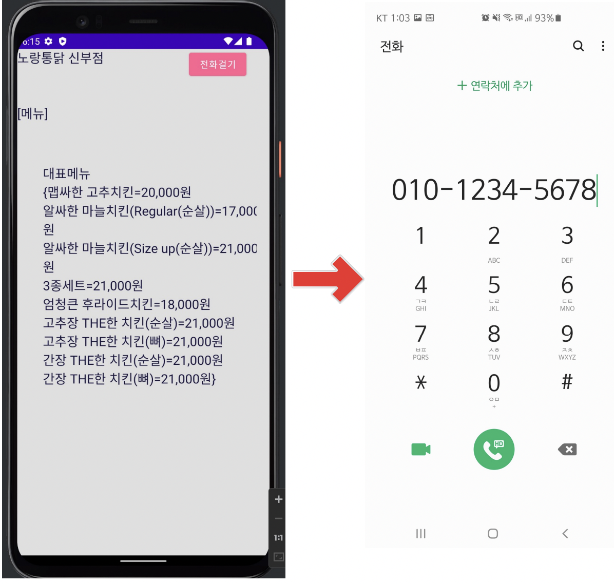 User can get informed menus of the restaurant and can call to the restaurant.