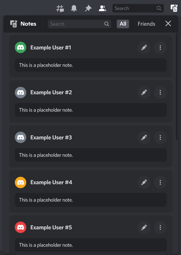 - Ability to use Discord's markdown within notes.