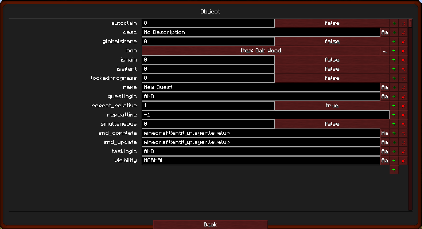 preRequisites, tasks and rewards simply lists anything you have already created in those categories. Click on properties:Object... then click betterquesting:Object.... Now you should see this screen: