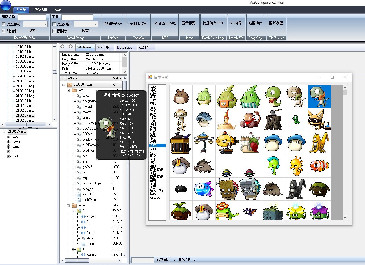 這個Plus版的idea是整合、合併WzCompareR2與MapleStoryDB2以及圖片瀏覽器..等等的功能在一起