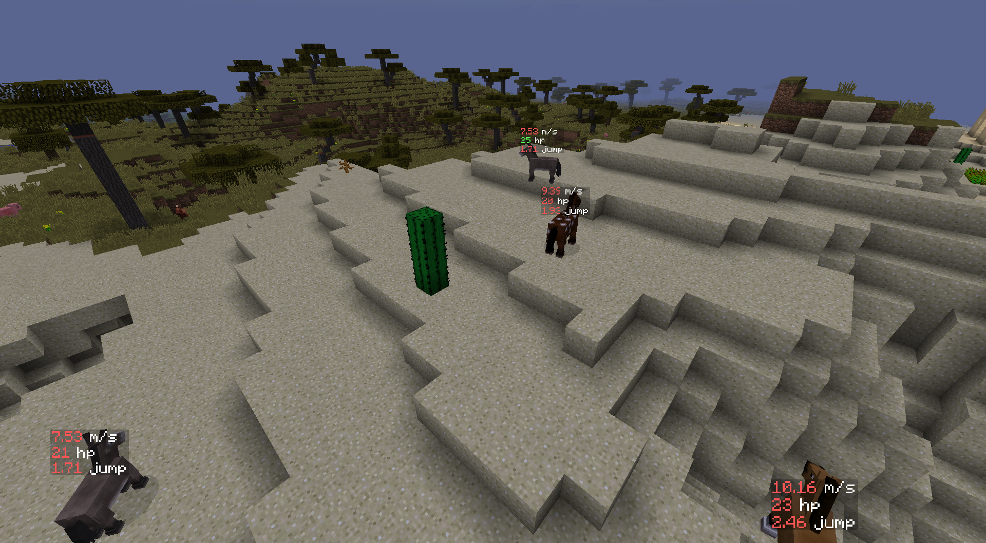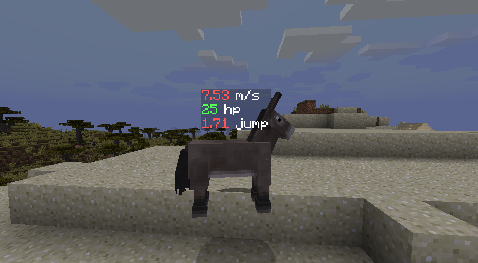 Horse Stats --- A Minecraft mod that renders the attributes of horses over their heads.
