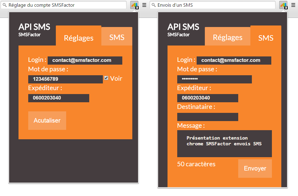 Puis après avoir redémarrer le navigateur https://chrome.google.com/webstore/detail/smsfactor/lfgbfpodgbkcanfopleilgfbfeelhigg