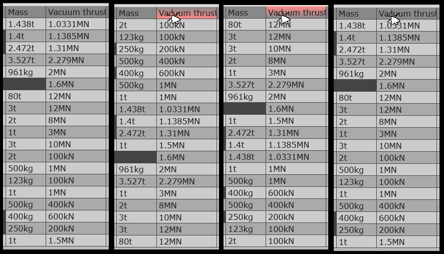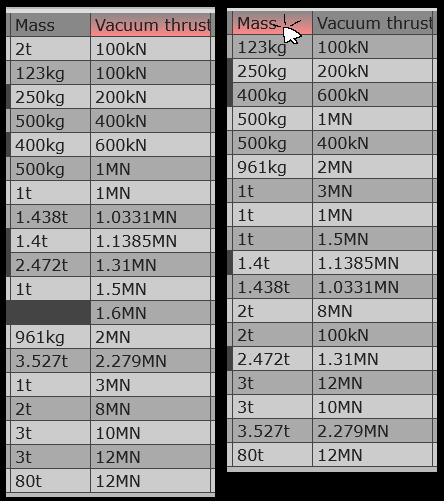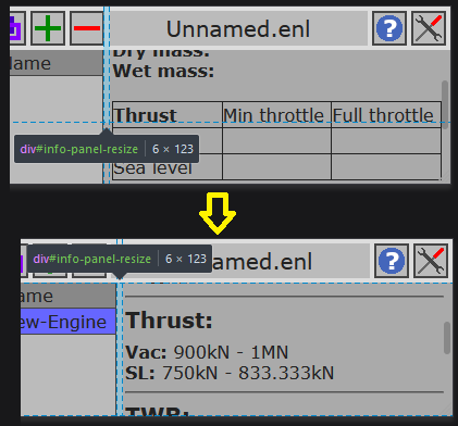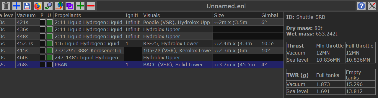 Thrust input, SL Isp input and Vacuum Isp input were connected into one column, so that you can directly edit engine's total mass flow. Also, with this new input, you can change the derived value from mass flow, to, for example, Isp.