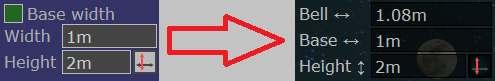 Bell/Base toggle was removed, in favor of splitting width input to two input fields. Changing one value will instantly change the other value.