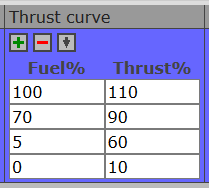 Optionally, set a custom thrust curve. It'll make the thrust depend on how much fuel you have left. KSP will use Fuel% of the first propellant in propellant tab. You should only use it in SRBs with built-in tanks. This particular thrust curve will gradually lower the thrust during burn, and quickly lower the thrust near the end of the burn.