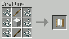 The recipe for the hammock cloth is simply a piece of colored wool in the center, sticks to the top and bottom, and the rest of the slots are strings.