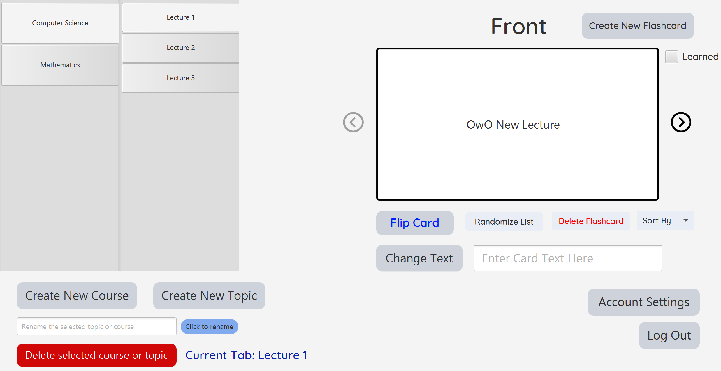 A index card manager made with JavaFX which allows you to create and browse flashcards for courses/classes.