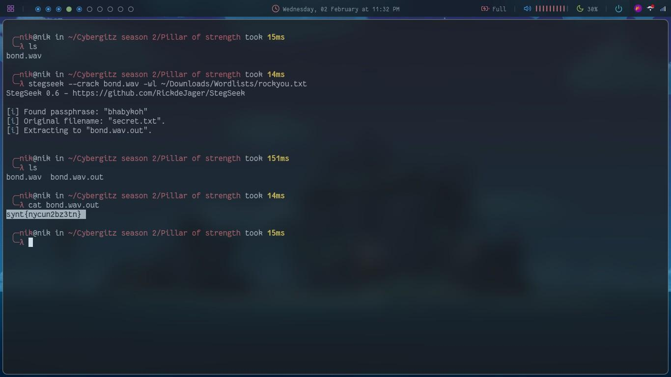 This is a question that comes under the steganography section. The question comes with a `WAVE audio file`.For this question I have used a tool named stegseek along with the rockyou.txt wordlist.