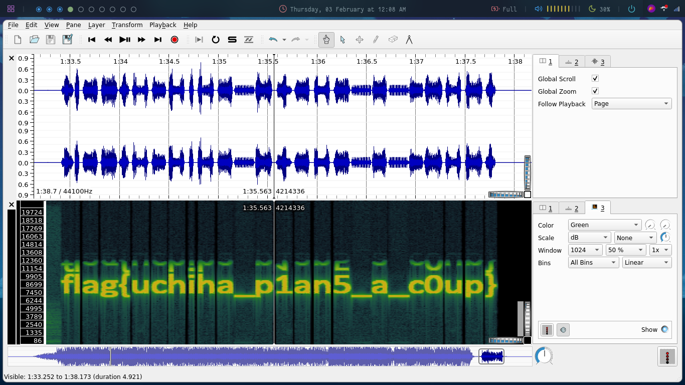 Now move through the audio till you reach the end. At the end you will find the flag (might have to zoom to get it clearly).