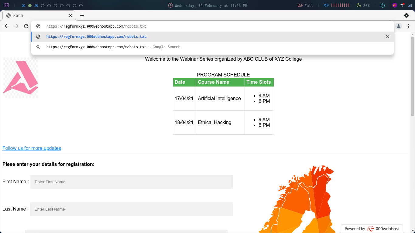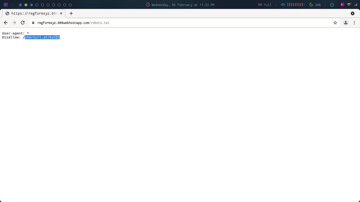 Visit the given link (next to Disallow). Don’t include the ‘/’ before the link as it’ll search for those inside your computer. So on visiting the given URL you’ll be taken to the following page:
