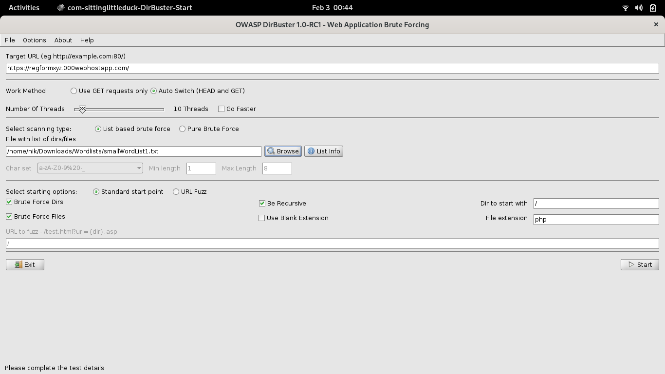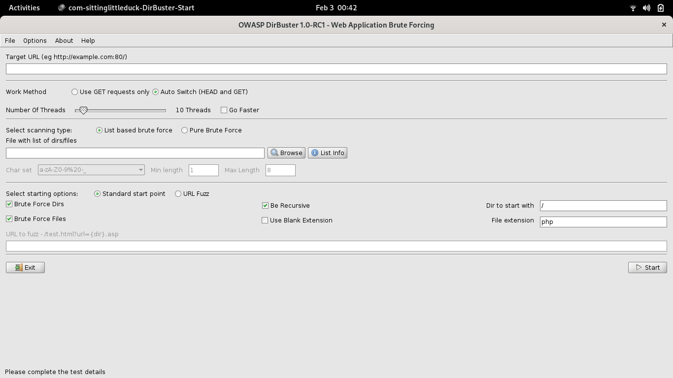 It is a Java based application and hence you would need Java to be installed on your system as well. The way this works is we give the target URL to the first field and a wordlist to the second field. We can change the other options according to our system but I won’t be doing that here.