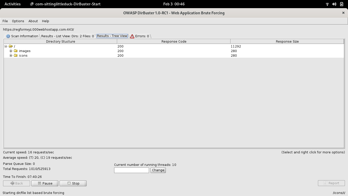 From the Results- view tree tab we can see that there are two directories - images and icons inside the main URL. Adding one of them (in this case images) to the main URL like so:
