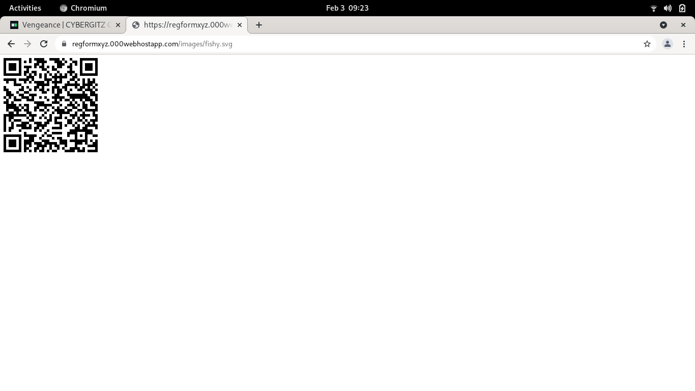 On opening this fishy.svg file we get this QR code. On scanning it we get the following: