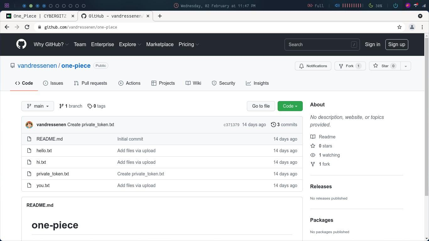 On checking all the files this is the content of private_token.txt file: