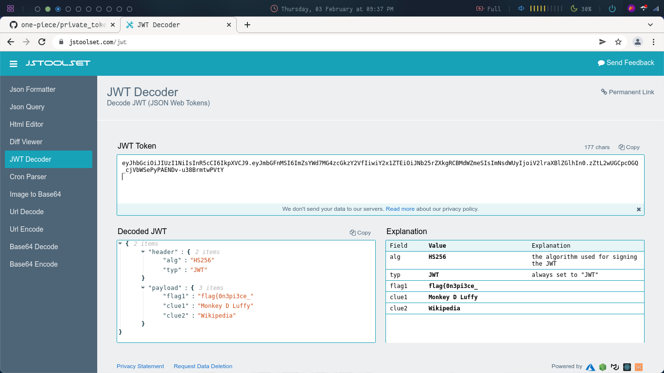 The third line is a JWT and hence after decoding it we get the following: