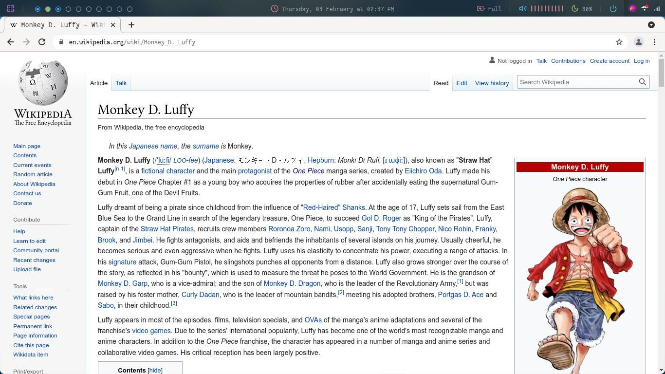 The first clue is Monkey D Luffy (the character shown in the picture) and the second is Wikipedia.