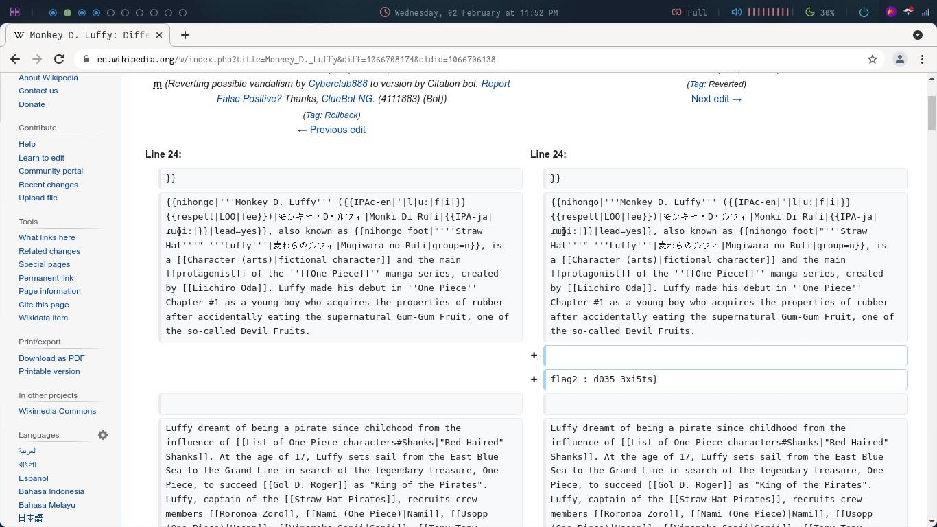 Here we can see that the edit made was the second part of the flag.