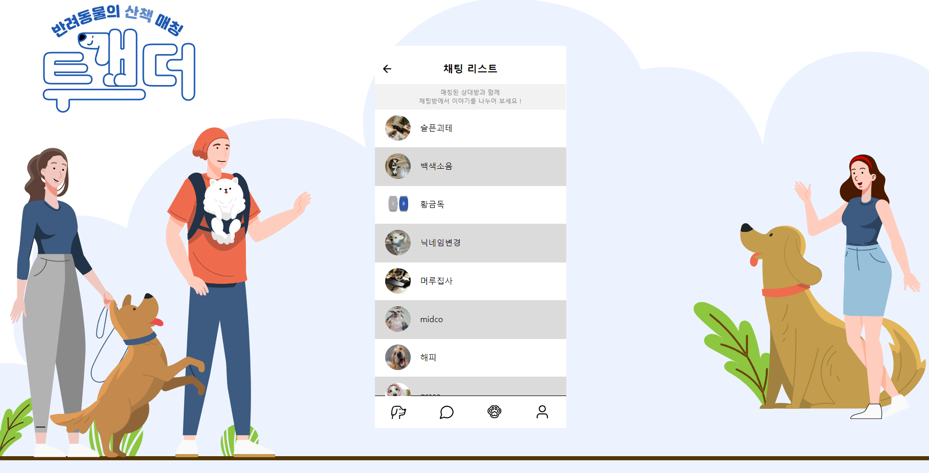 위치 정보를 통해 주변 반려인들과 산책의 기회를 제공하는 웹앱 기획