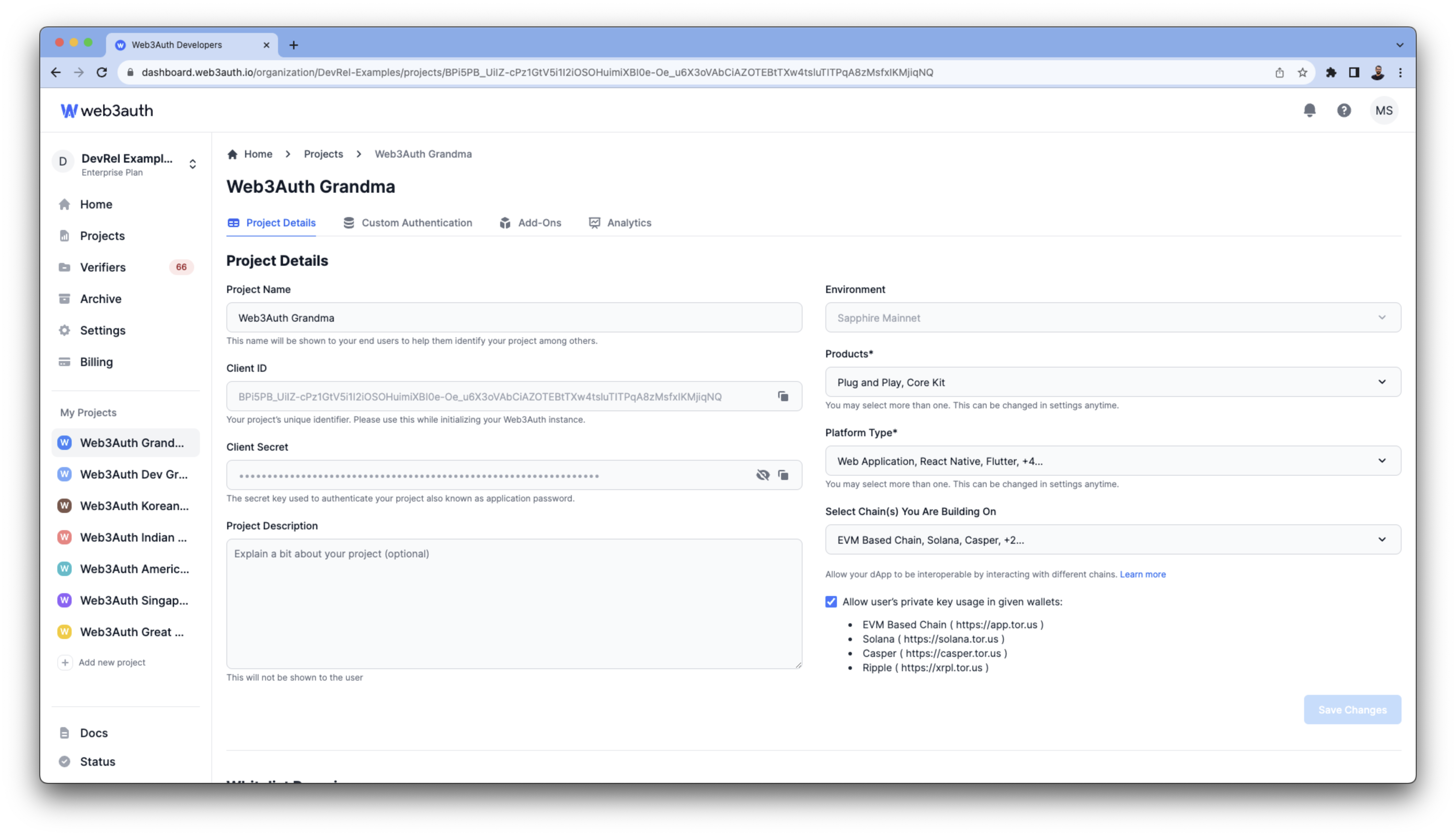 npm install --save @web3auth/mpc-core-kitHop on to the Web3Auth Dashboard and create a new project. Use the Client ID of the project to start your integration.