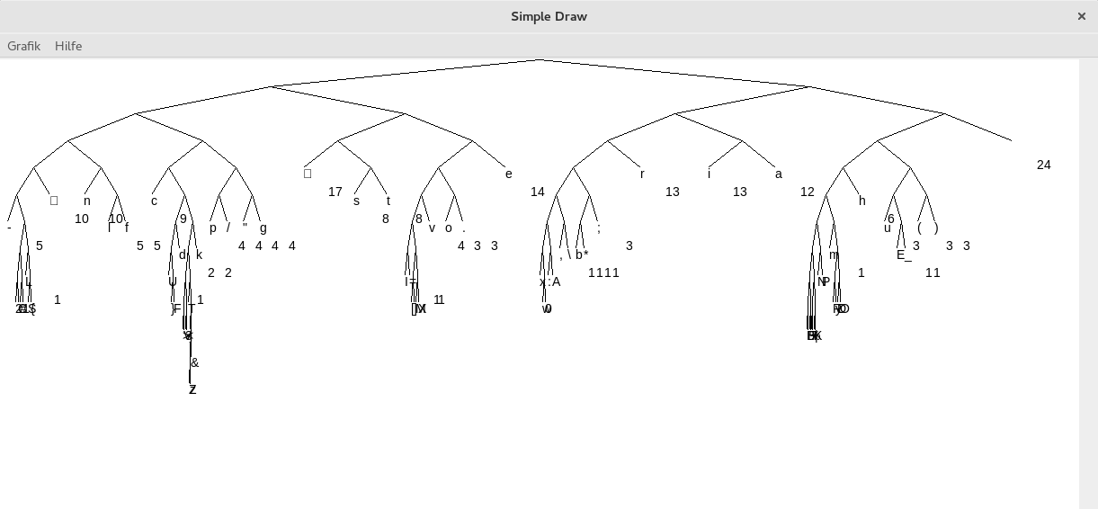 Example of a generated huffman tree (you'll get this when visualizations are enabled at compile time).