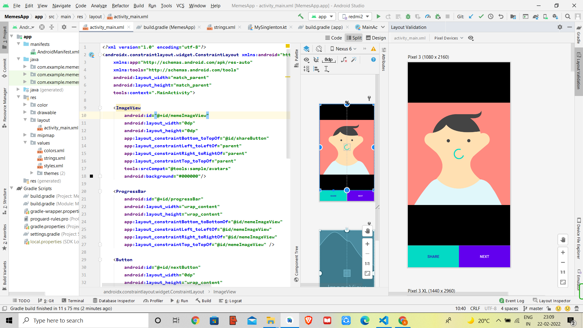 MemeShare A meme sharing App in Android Studio. That make API calls in Android using Volley library. It process images using Glide Library too.