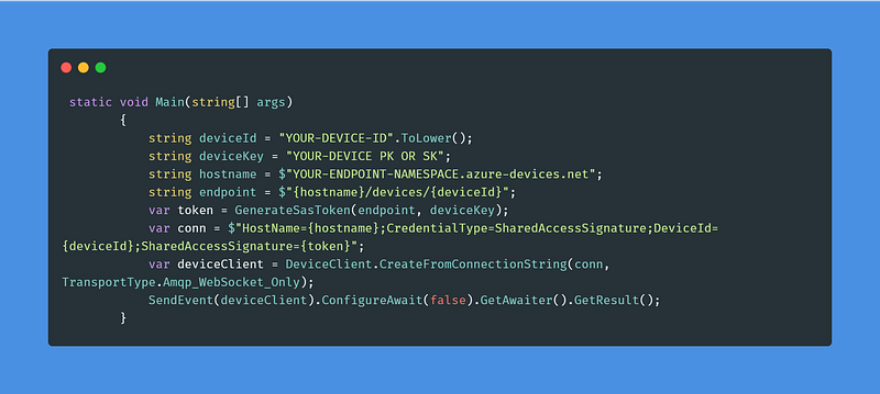 - Install the package Microsoft.Azure.Devices & Microsoft.Azure.Devices.Client from NuGet.