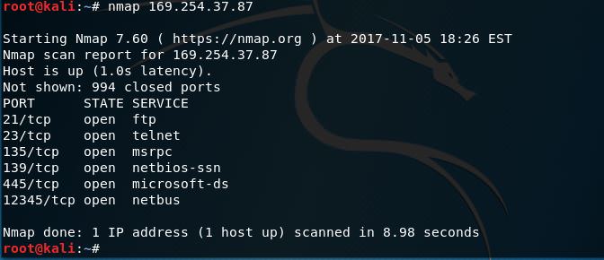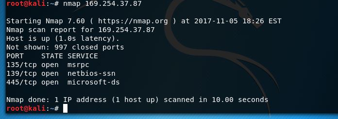 I had quite a few issues with installation when attepting to follow the walkthrough given on the assignment page. Instead, I decided to use a honeypot software found online. I utilized Atomic Software Solutions tool Honeybot to moniter scans on an IP address. The image below shows nmap scan before opening any ports: