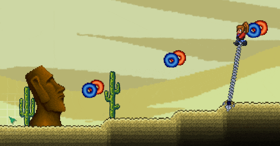 The Gradius series always has a stage filled with Moai enemies. Different colors mean different attacks and behaviors. Some of them can even jump and float.