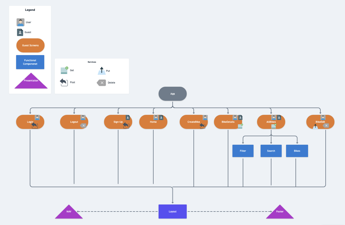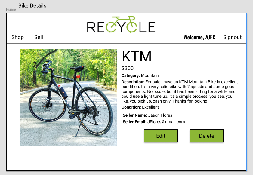 The purpose of this web application is to allow users the ability to resale and purchase used bikes. New guests to the site will have the ability to view bike inventory and have limited access to bike details. Once guests create a user profile, they will be able to view full bike details, which includes the seller's username and email address. In addition, users have the ability to post bikes for resale with the option to edit and delete the post as needed.