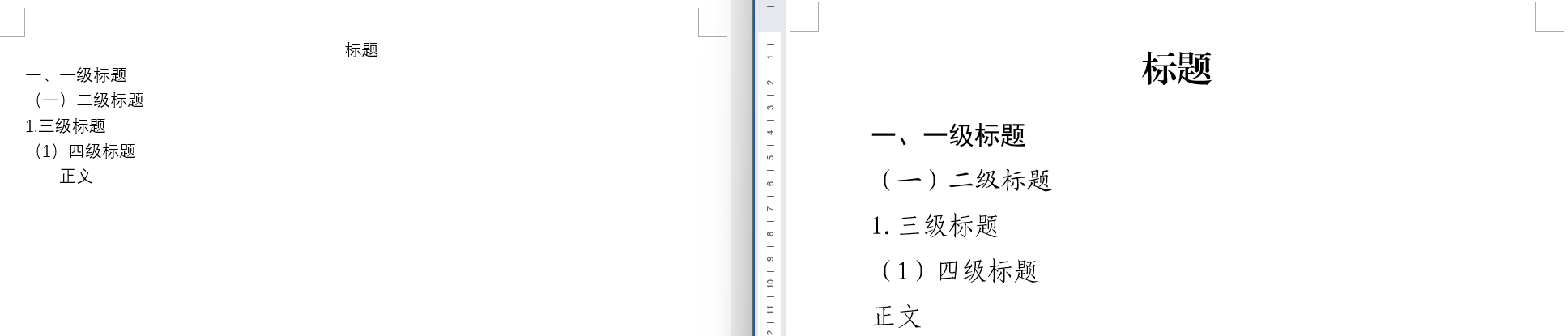 - 多级标题识别:自动识别“一、”、“(一)”、“1.”、“(1)”等四级常规标题并应用格式。