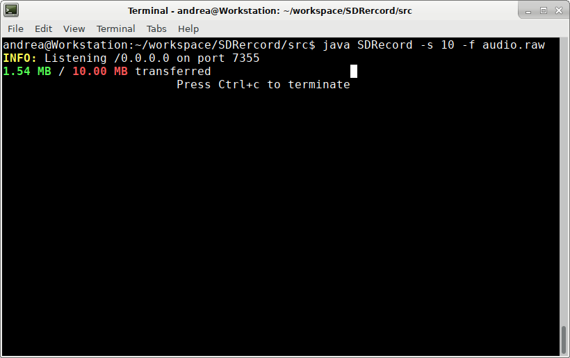 andrea@Workstation:~/Downloads/SDRecord-master$ java SDRecord -f audiofile