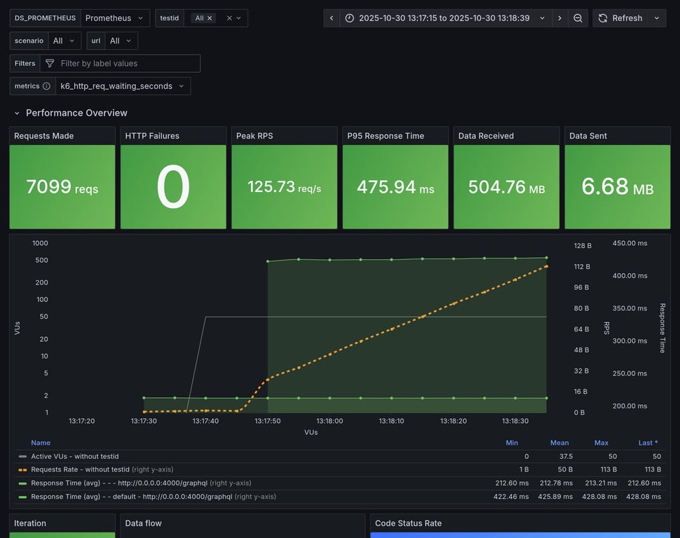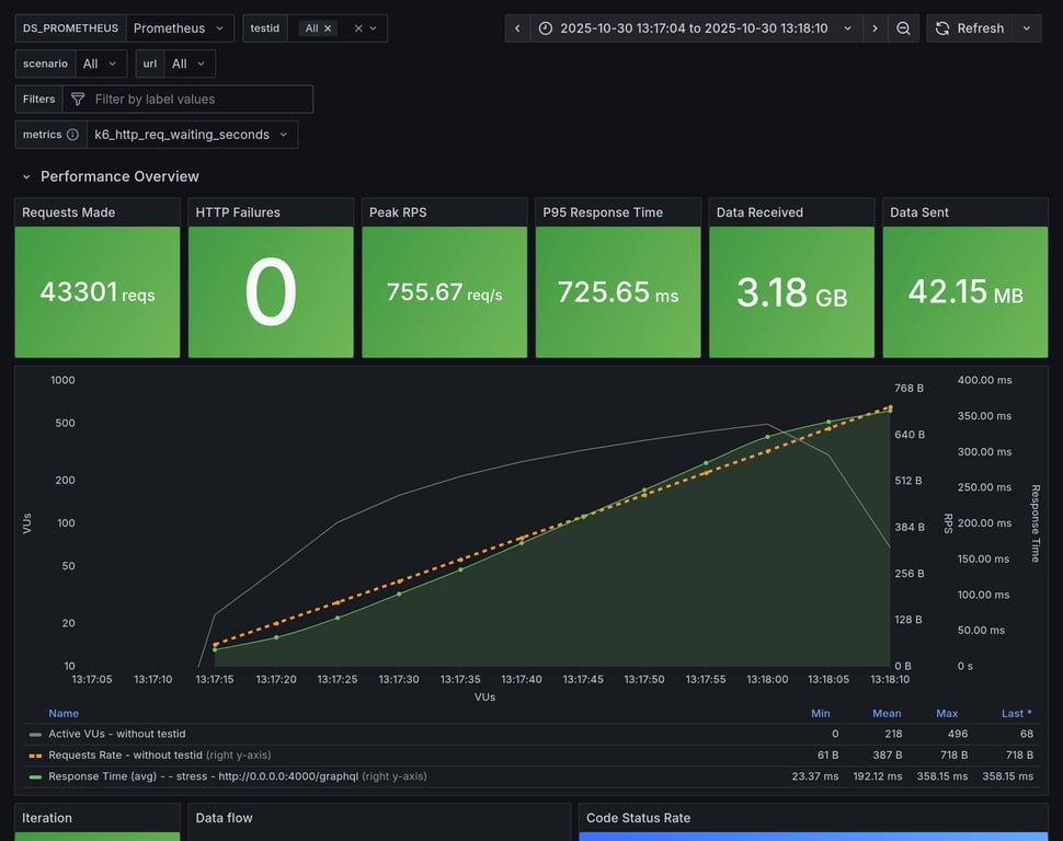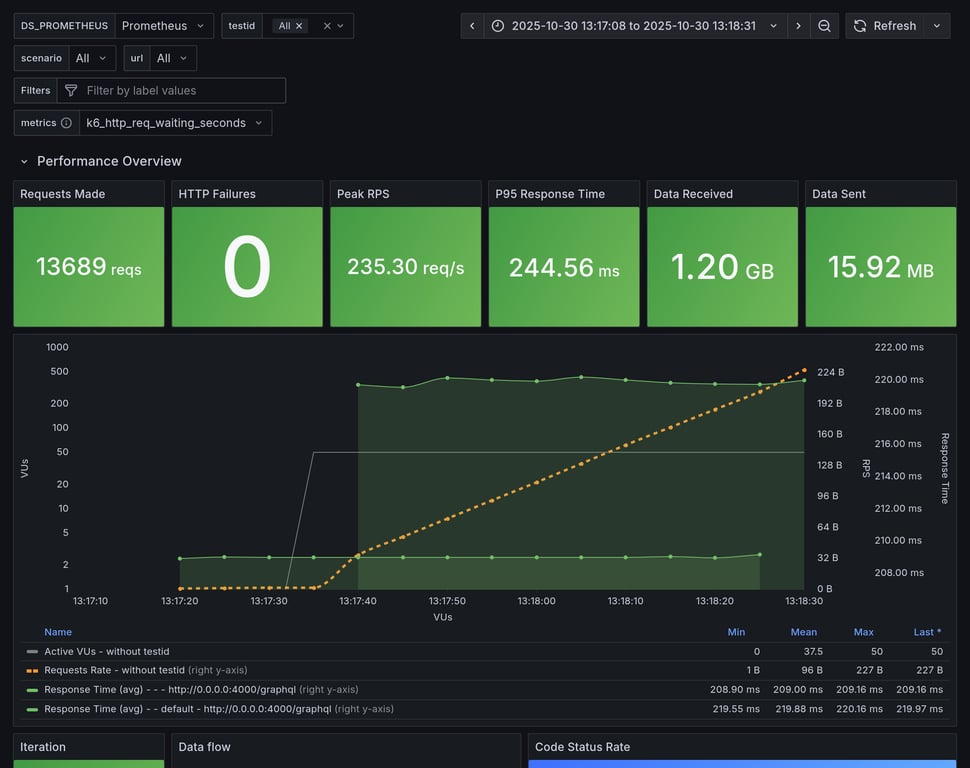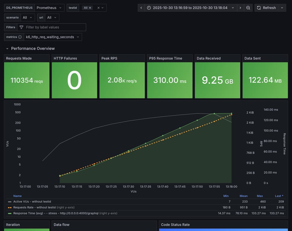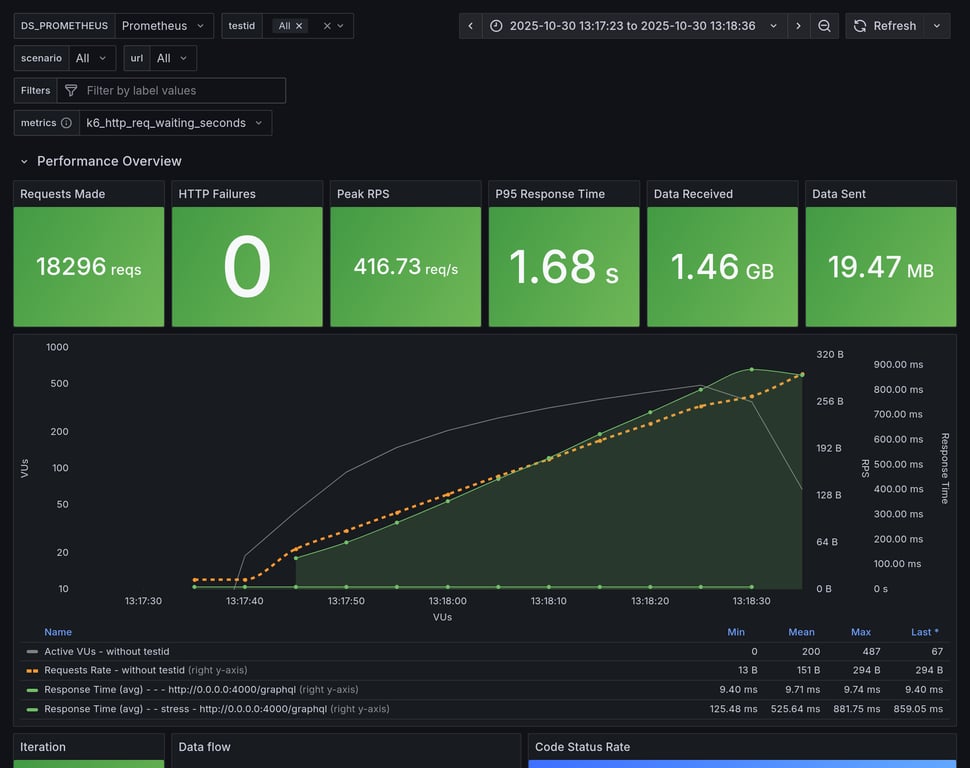| apollo-gateway | 153 | 10508 total, 0 failed | avg: 1237ms, p95: 2694ms | ✅ |