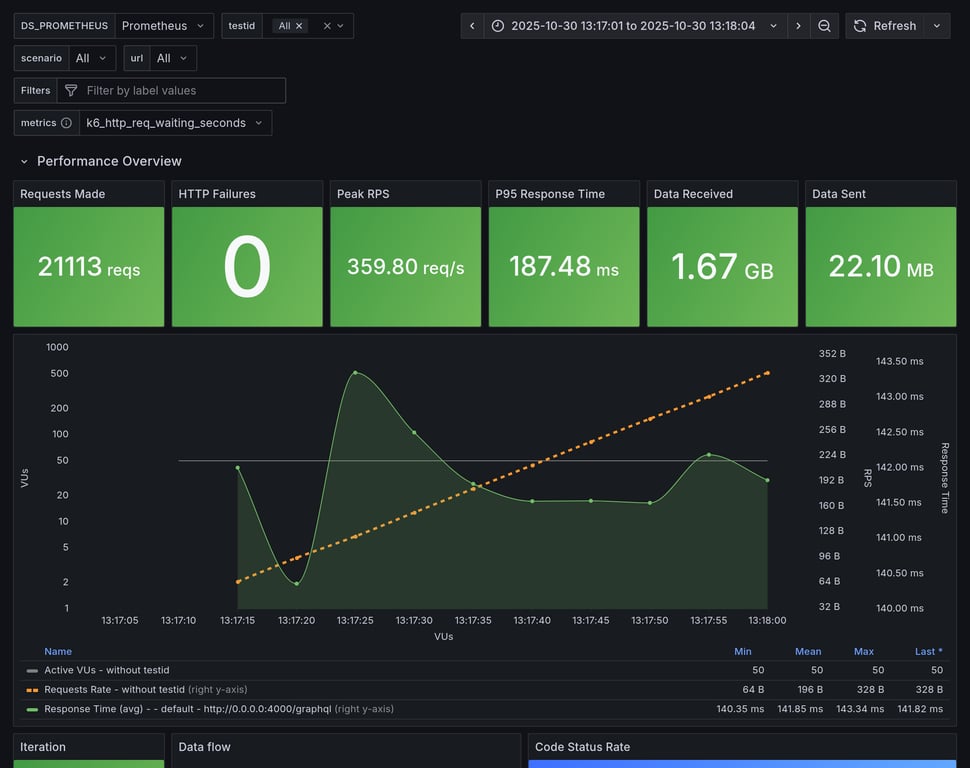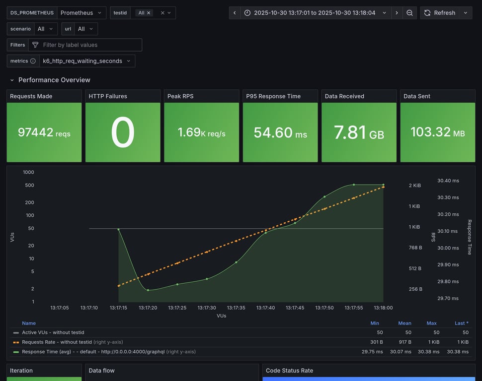 | grafbase | 1450 | 91791 total, 0 failed | avg: 152ms, p95: 352ms | ✅ |