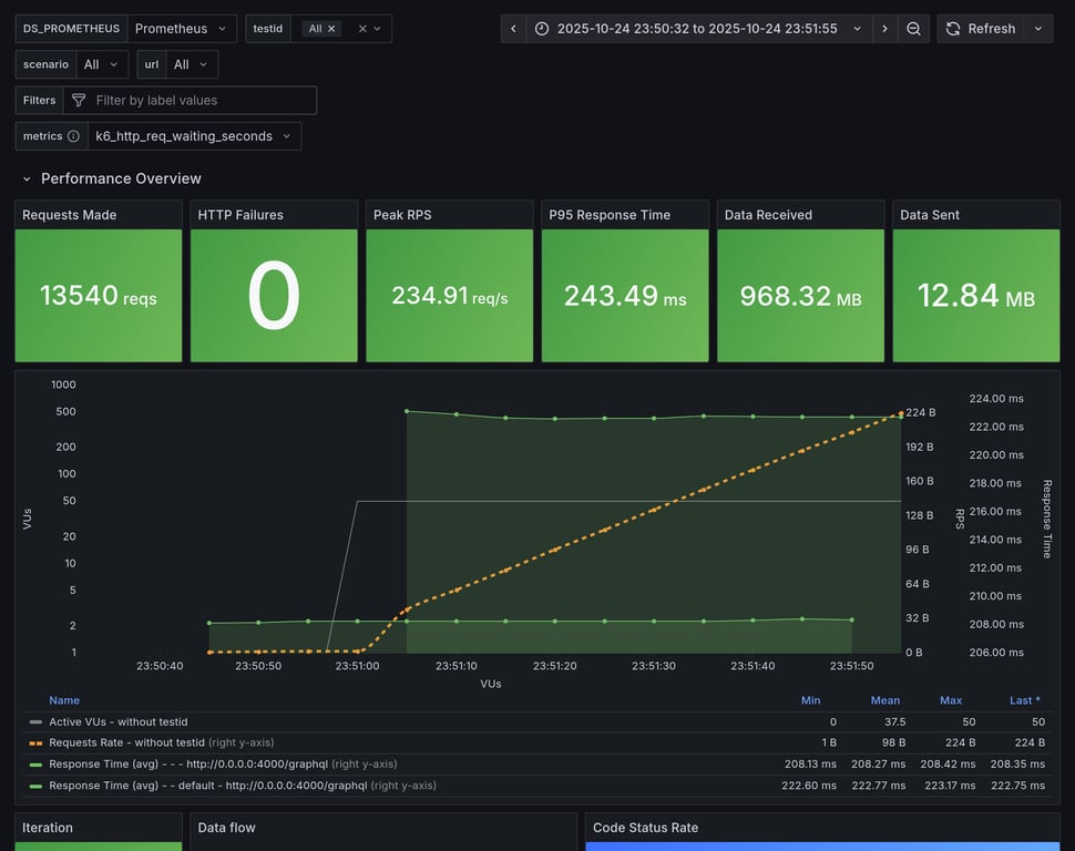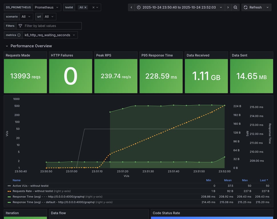 | apollo-router | 379 | 23080 total, 0 failed | avg: 130ms, p95: 169ms | ✅ |