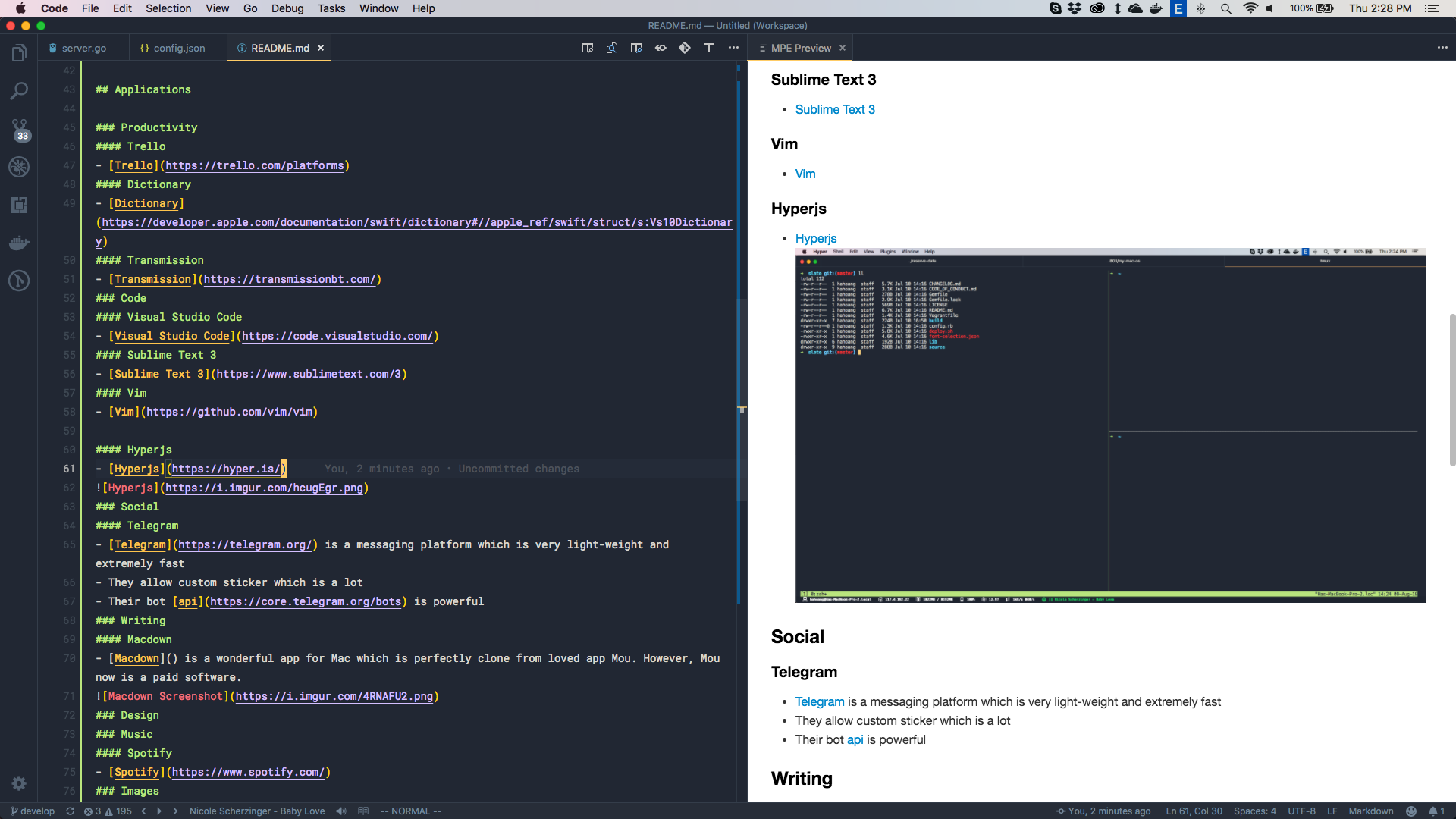 My list of application and configuration for my macbook pro :D