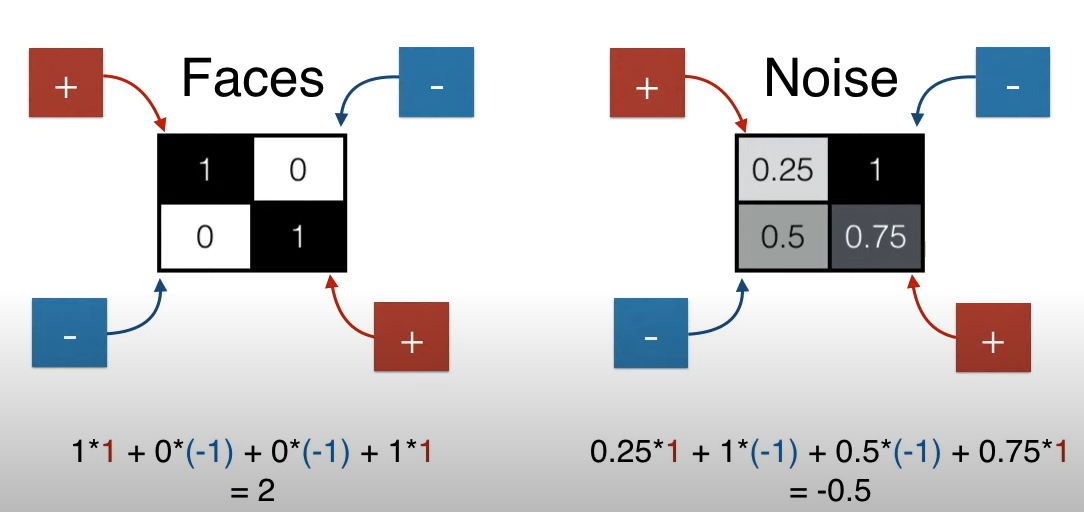 For faces, the end result value is high and for non-faces, the end result value is low. Threshold = 1 More than 1: face. Less than 1 : no face.