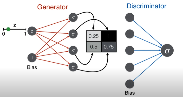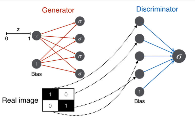 GANs consists of a pair of neural networks that fight with each other. One is called generator and another one is called discriminator.
