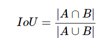 - raction of area of intersection of the predicted segmentation of map and the ground truth map to the area of union of predicted and ground truth segmentation maps.