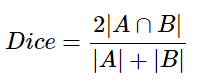 - ratio of the twice the intersection of the predicted and ground truth segmentation maps to the total area of both the segmentation maps.